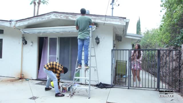 Double Dildo Solo Session Then Roughly Analized By Two Black House Workers